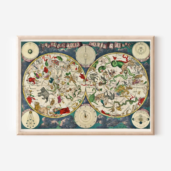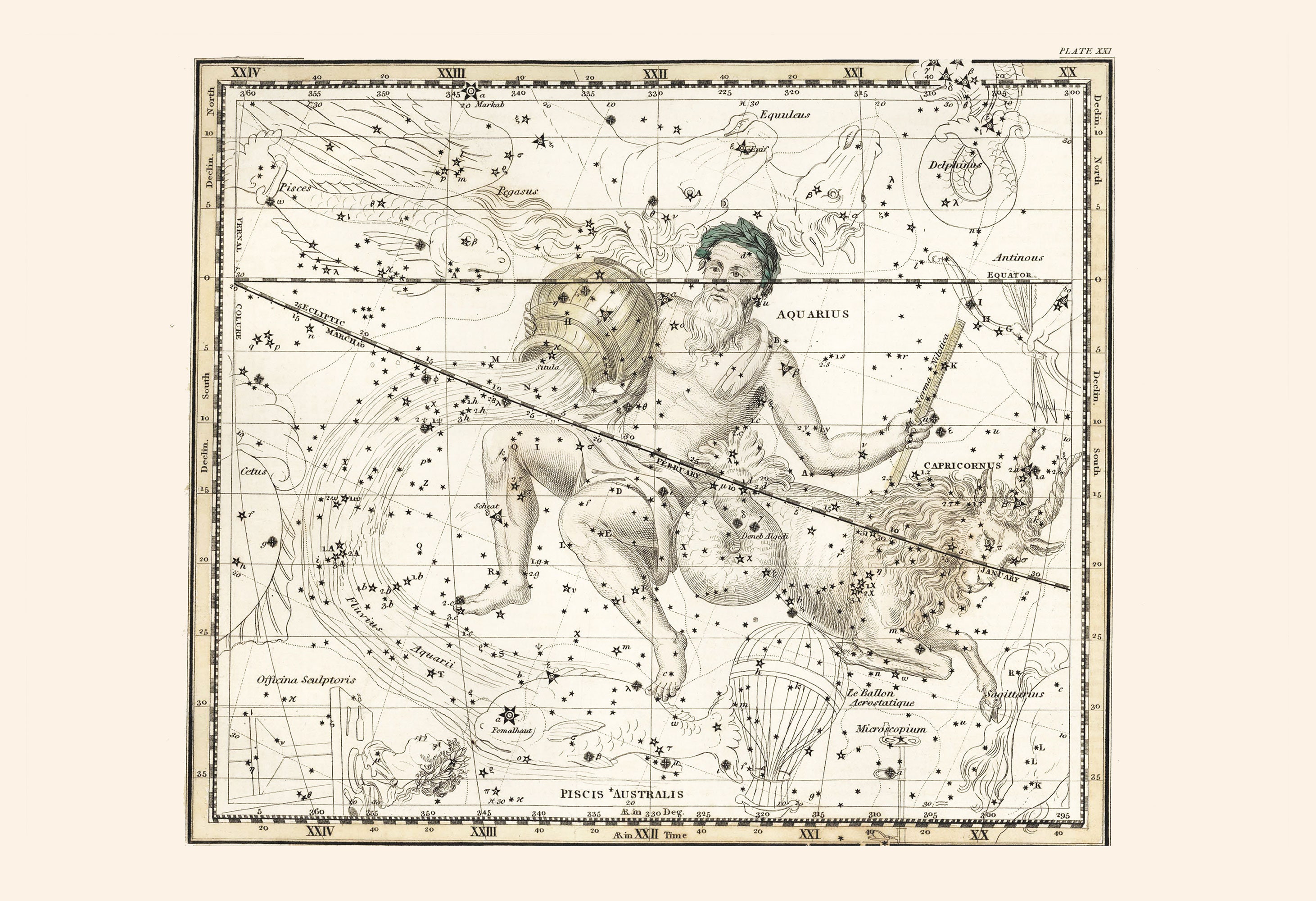 Aquarius Sign Map Print Zodiac Sign Map Print Professional Etsy Canada